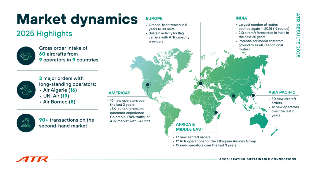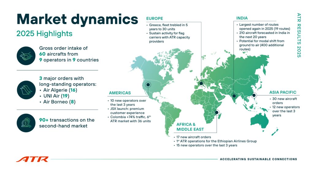 “Demand for our aircraft is strong, regional operators want more capacity,” stated Alexis Vidal, ATR’s SVP Commercial. “Looking into 2026, regional mobility continues to grow, driven by modal shifts from ground to air in developing economies, a need for greater network connectivity in mature markets, and the development of premium passenger experiences. With a need for affordable air travel, and fuel costs set to increase, turboprops are the only economically viable solution to scale regional connectivity profitably.”